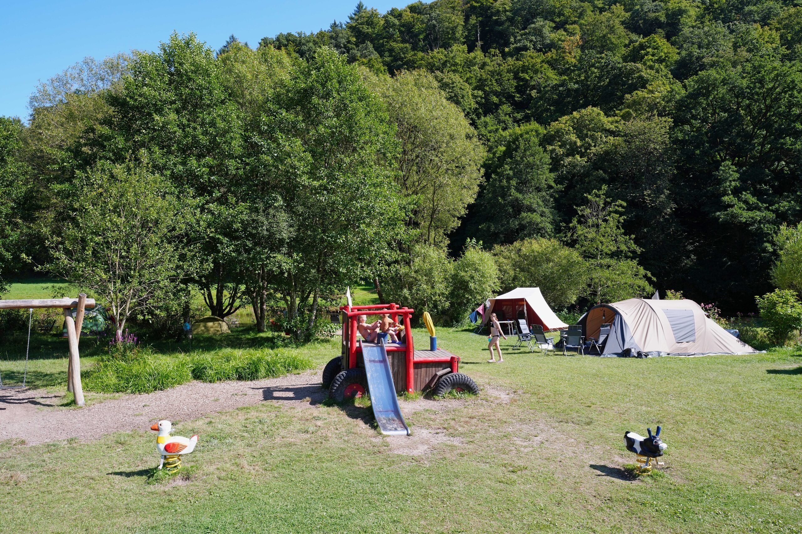 Kom genieten en wordt overladen door natuur! Camping Berkel is een gemoedelijke camping aan de rivier de Sûre en midden in een dal van de Luxemburgse Ardennen. Ga erop uit en ontdek het prachtige heuvellandschap.